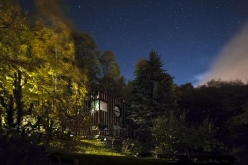 Poput slične Espinar kuće o kojoj smo nedavno izvestili, Crna magična kuća je izgrađena od jeftinih građevinskih materijala, u ovom slučaju prefabrikovanih lameliranih drvenih panela. Ovo daje enterijeru pomalo nedovršen izgled, ali sudeći prema galeriji fotografija, to je u skladu sa prirodnom temom takvog seoskog doma, i uprkos nadimku na vidiku nema kozije glave niti žrtvenika.