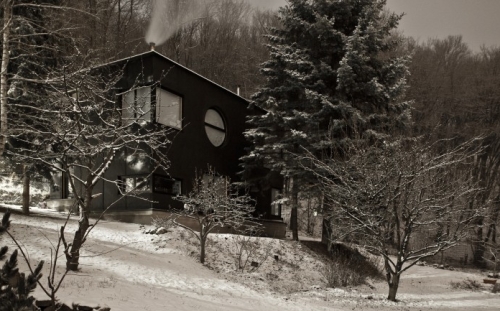 Kako bi ponudila dodatnu zaštitu tokom hladnih zimskih meseci, imovina je pokrivena crnom, UV otpornom, membranom koja je vodootporna, i pruža domu njegovu karakterističnu boju. Biro T2.a Architects je takođe ocenio da bi drugi sloj crnih drvenih panela mogao biti nepohodan dodatak u budućnosti.