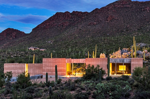 Ova prelepa kuća od nabijene zemlje je okružena sa ogromnim Saguaro kaktusima i nalazi se u pustinji Sonoran. Kuća u Tusonu, Arizona, je delo arhitektonskog biroa DUST, a projektovana je korišćenjem strategija pasivnog dizajna i izgrađena je od materijala sa malim uticajem na životnu sredinu, što je čini vrlo ekološkim domom. Glavna karakteristika doma su zidovi napravljeni od nabijene zemlje, koja je snabdevena lokalno, kao i sistem za sakupljanje kišnice koji je preko potreban u ovim pustinjskim uslovima.