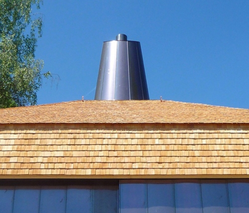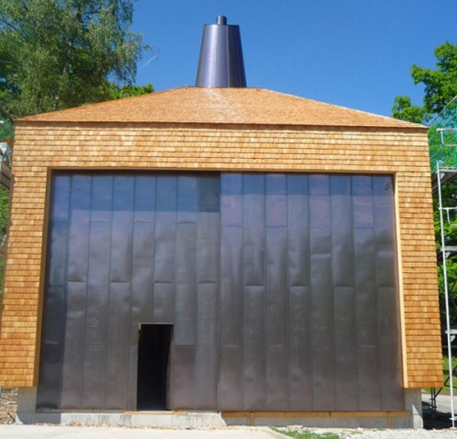 Fasada ove toplane je prekrivena šindrom napravljenom od ariš drveta - vrste drveta koje obilato raste u podneblju grada Bad Ajblinga u Bavarskoj. Forma objekta, posebno krov, donekle podseća na San Vito crkvu koja se nalazi u italijanskoj regiji Adiđe.