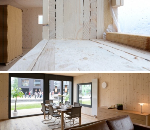 Stambeni blok Woodcube ima ukupnu površinu od 1.479 kvadratnih metara i sadrži osam stambenih jedinica, koje se kreću u rasponu od 90 do 190 kvadratnih metara. Spoljašnji zidovi debljine 32 santimetara nude odličnu prirodnu izolaciju.