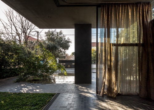 Arhitektonski biro Tensa Architecture Network projektovao je ovu rezidenciju sa industrijskom estetikom uz izložene betonske zidove, podovima od kaldrme i savijenim čeličnim stpeništem koje visi na žičanim kablovima.