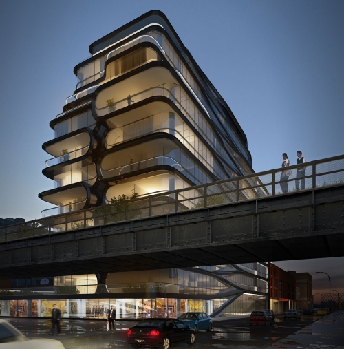 Britansko-irački arhitekta Zaha Hadid je upravo završila projektovanje luksuzne stambene zgrade - svog prvog projekta za Njujork. Dizajn zgrade preuzima bogatstvo živahnog i istorijskog urbanog kontesta lokacije. Međusobni uticaji koji su grad i obližnji zeleni projekat High Line imali na projekat je rezultirao urbanom dinamikom koja se smešta između povišenog parka i okolnih zgrada.