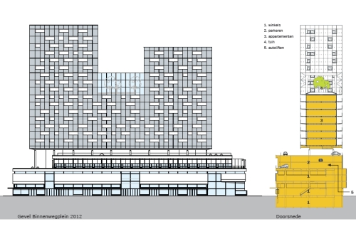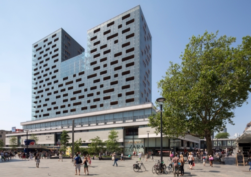 Stara roterdamska robna kuća koja je bila predviđena za rušenje je umesto toga sačuvana i obnovljena, a sada formira postament novog stambenog bloka od 16 spratova. Novi život za staru zgradu pod okriljem novog zaštitnika, ili problematična stara ruševina koja nespretno pruža sidrište za novi objekat? Pokušaćemo da odvagamo dokaze.