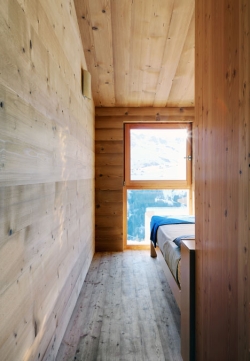 Projekat se zasniva na dva posebna uslova: jedan uslov su potrebe investitora za malim i intimnim prostorom, a drugi je stvaranje malog, posebnog i dragocenog mesta. Alpski pejzaž dominira ovim mestom, a drveni eksterijer i enterijer stvara topli kutak koji podseća na kolibu.