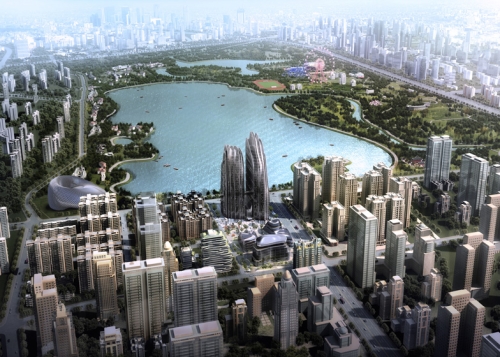 „Uzimajući prirodnu lepotu jezera i planina, arhitektonski kompleks se može posmatrati kao futuristička slika gradskog pejzaža“, objašnjavaju projektanti. „Neboderi deluju kao vrhovi, pojedinačne poslovne zgrade kao padine, poslovni tornjevi kao grebeni i stambeni objekti kao planiski venci, u kombinaciji sa klasičnim pejzažnim elementima kao što su jezera, izvorišta, šume, potoci, doline, stene i vrhovi.“