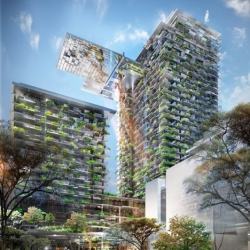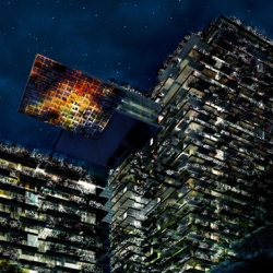 Cela okolna zona mešovite namene paralelno se projektuje kako bi više od 600 porodica koje će se naseliti u tornjevima mogle zadovoljiti i sve druge potrebe, pa su tako u njoj predviđeni trgovački, ugostiteljski i poslovni sadržaji. Pri samom vrhu tornja smešteni su luksuzni stanovi na interesantnoj konzoli na čijem su dnu postavljena ogledala koja danju preusmeravaju direktnu sunčevu svetlost na vrtove u podnožju, dok noću funkcionišu kao platno za LED svetlosnu instalaciju umetnika Jana Kersalea (Yann Kersale).