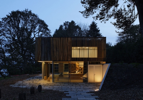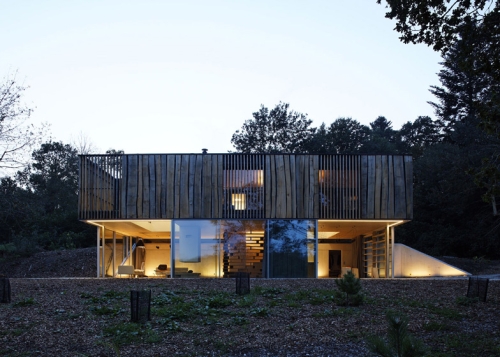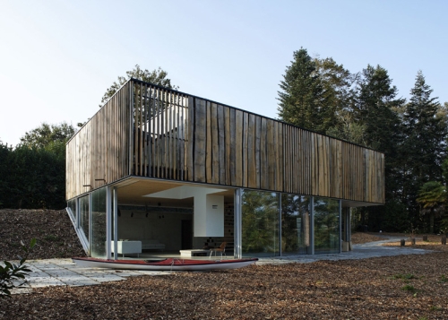 Ova delimično ukopana kuća može se pohvaliti vrlo interesantnom arhitekturom koja odiše jednostavnošću prostorne organizacije i elagancijom izbora materijala. Kuća D se nalazi u Bretanji i delo je francuskog arhitektonskog biroa Lode Architecture. Blagi nagib same lokacije je maksimalno iskorišćen ukopavanjem dela kuće, koji je u potpunosti zastakljen, tako da gornji sprat odaje utisak konzole koja se nadvija nad prizemljem.