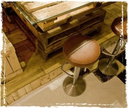 Paletina kuhinja sastoji se od radne površine, koja uključuje rernu, dasku za seckanje i električni šporet koji je postavljen leđa uz leđa sa suduperom od nerđajućeg čelika. Radna površina je uokvirena sa recikliranim paletam i uredno je smeštena pored susedne grupe paleta koje su pokrivene sa jednim komadom stakla. Ovaj deo sadrži niz naslaganih palete i služi kao funkcionalni prostor za pripremu hrane ili kao klupa za ručavanje.