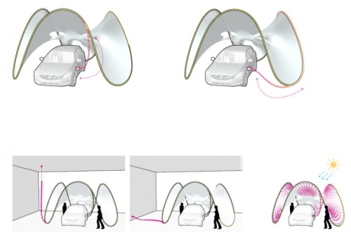 „Kako ću sprečiti da mi crkne baterija dok sam na putu?“ To je pitanje koje se postavlja iznova i iznova, čak i od strane najvatrenijih zagovornika obnovljivih izvora energije, i svakako od strane šire javnosti koja vozi. Sa samo 161km kapaciteta baterije i sa nekoliko mesta za punjenje duž većine puteva na zapadu, strah od nedostatka energije na autoputu je realan i prisutan. Uz zajedničku pomoć dizajnera i arhitekata, Volvo nudi jedno moguće rešenje - sklopivi, solarni paviljon veličine nadstrešnice za auto, nazvan Pure Tension.