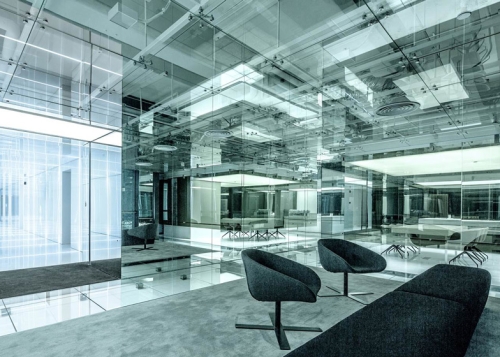 Zidovi prepuni sa ogledalima i stakleni plafoni transformišu ovaj kancelarijski enterijer u Šangaju u lavirint reflektovane svetlosti i čudesnog sveta maštarija. Šangajski arhitektonski biro AIM Architecture projektovao je enterijer kancelarijskog prostora za Soho China, investitora koji stoji iza projekta Galaxy Soho Zahe Hadid i Vangđing Soho projekta.