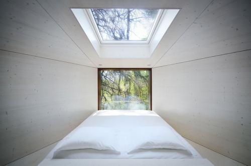 Konstruktivni ram ovih šumskih boravišta je napravljen od kombinacije prirodnih sirovih materijala, škriljca i drveta koji takođe doprinose njihovoj nevidljivosti u prirodnom okruženju parka. Održivost i ekologija nisu zaboravljeni u realizaciji ovih kuća.