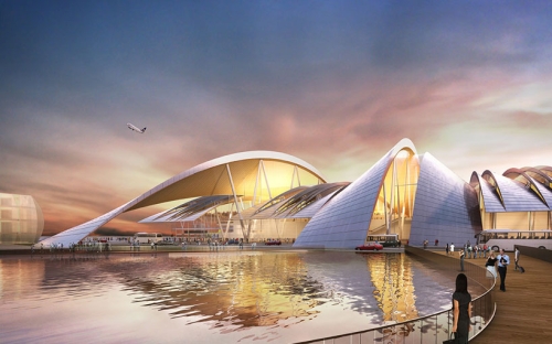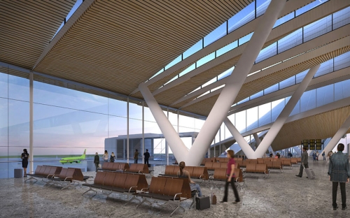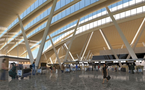 Tri velika, formom različita, svoda se izdižu iznad strukture, izražavajući glavne rute za putnike koji se kreću između zone za sletanje i poletanje, dok ujedno pružaju pokrivene delove koji spajaju zonu za dolazeće putnike, susedni hotel i poslovni centar.