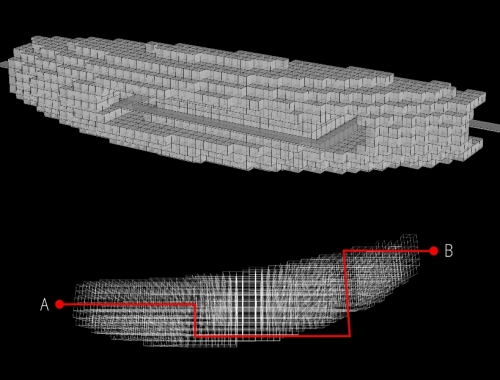 Kao odgovor na prirodno okruženje planina i neba, poseban algoritam je korišćen za dizajn ove mreže u obliku oblaka koja balansira asimetrično opterećenje pešačkog mosta.