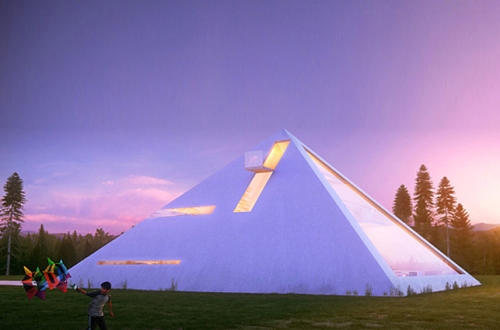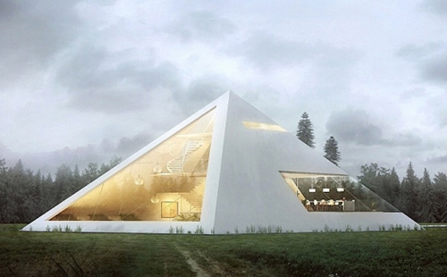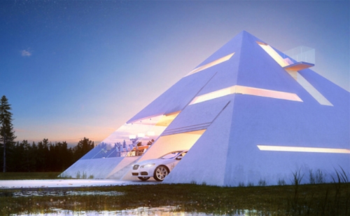 Sa ukopanim životnim prostorom, trouglastim staklenim zidovima i otvorenim planom, ova Kuća piramida spaja drevnu arhitektonsku tipologiju i modernu stambenu arhitekturu. Meksički arhitekta Huan Karlos Ramos (Juan Carlos Ramos) projektovao je Kuću piramida za konkurs koji je pozivao na projektovanje zasnovano na jednostavnoj geometriji, a njegov predlog je dostojan faraona iz modernog doba.