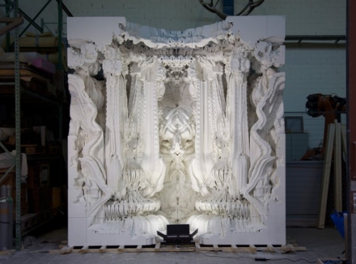 Nazvana „Digitalna groteska“, njihov moderan pokušaj stvaranja srednjovekovnog enterijera je napravljen od novog tipa 3D štampanog peščara, ubrizgan sa smesom za otvrdnjavanje koji povećava njegovu strukturalnu stabilnost. Kako bi odštapali delove peščara kojom su napravili sobu, duo je koristio masivni Voxeljet 3D štampač, koji je veličine poveće sobe. „On može da odštampa jedan element koji teži 12 tona, ali u rezoluciji sloja od samo 0,13 milimetara“, kaže Hansmejer. „Ova kombinacija veličine i rezolucije štampe je nama u početku delovala nestvarno.“