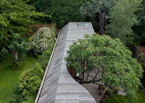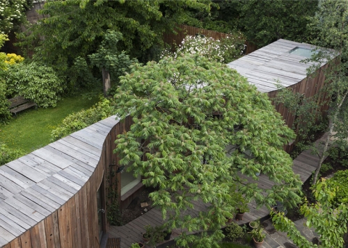 Londonski arhitektonski biro 6a Architects projektovao je nadogradnju kuće arhitektonskog kritičara Rouana Mura (Rowan Moore) i njegove porodice dodavanjem drvene strukture koja krivuda oko postojećeg drveta. Ekstenzija je proejktovana kako bi se obezbedila nova spavaća soba u prizemlju i kupatilo za ovu londonsku kuću, koja je spoj dve vikendice izgrađene 1830-ih godina.