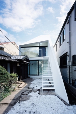 Puno puta smo pisali o jedinstvenim japanskim kućama koje odlikuje asketski i minimalistički pristup toliko jedinstven samoj japanskoj kulturi. Principi projektovanja u Japanu leže u funkcionalnosti samih prostora, kao i odnosima koji oni stvaraju sa okolnim objektima, čije uporište se nalazi u svakodnevnim odnosima među japancima. Danas vam predstavljamo mikro Kuću Strelu (Arrow), delo japanskog arhitektonskog biroa Apollo Architects & Associates, čije duge bele stepenice imaju funkciju ulaza i vode pravo do gornjeg sprata.