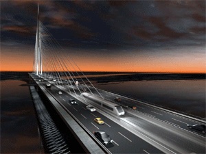 Most će biti dugačak 929 metara, s stubom visine 200 m, i imaće šest kolovoznih traka, dve staze za pešake i dvostruke šine namenjene lakom metrou.