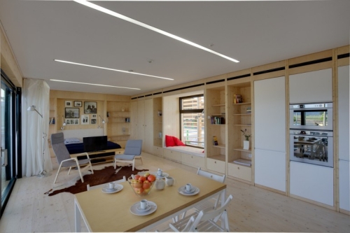 Dizajn kuće je moderan i elegantan sa produženim krovom na jednoj strani koji dodatno stvara zaklonjeni prostor zaštićen otvorenim drvenim zidom. Spavaća soba i kupatila su prikladni prostori koji zauzimaju minimum slobodno prostora u kući, ostavljajući većunu prostora za dnevnu sobu, trpezariju, kuhinju i trem otvorenog tipa. Iako je sve to čini vazdušastom i kul, kuća će ipak biti modifikovana sa povećanom termičkom izolacijom za potrebe buduće izložbe u Austriji.