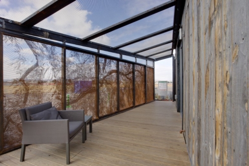 Najupečatljivija značajna karakteristika ove kuće je „druga koža“ - drveni omotač sa otvorima koji oblaže dve strane kuće i „pluta“ preko krova, pružajući pešačke staze slične pergoli i osenčenje za fasadu od direktne sunčeve svetlosti.