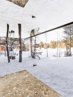 Ulaz u kolibu se nalazi u okviru zaštićene oblasti koja obuhvata prednji deo objekta. Paneli od ogledala pokrivaju strane i plafon ovog prostora, održavajući sve oko sebe. Namera je da se preko ovih panela kuća integriše sa šumom kroz njeno odražavanje.
