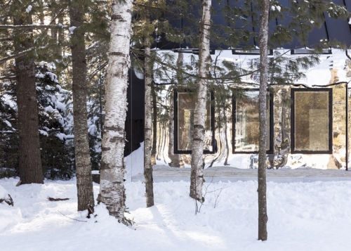 Ovo proširenje vikendice u šumi pored jezera u Ontariju kanadskog arhitektonskog biroa UUfie se može pohvaliti sa neobičnim dizajnom koga karakterišu zidovi od ugljenisanog drveta kedar i ulaz koji je obložen ogledalom.