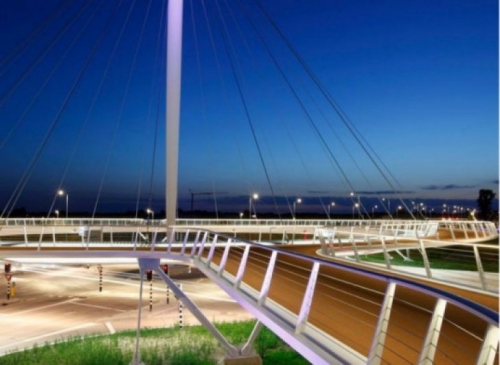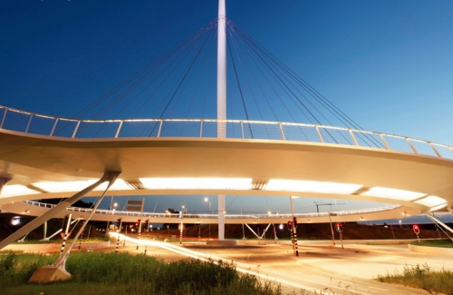 Nosači u obliku slova M koji se nalaze ispod ulaza dodatno učvršćuju temelje strukture, a LED osvetljenje koje je postavljeno na ogradi mosta osvetljuje staze i povećavaju vidljivost za noćnu vožnju.