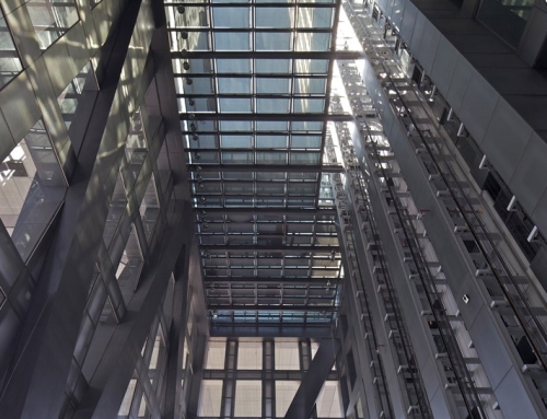 Mreža od čeličnih dijagonalnih konstruktivnih rešetaka na fasadi obavija konzolno postolje i prenosi vertikalna i horizontalna opterećenja nazad u centralnu kulu, koja je i sama obložena sa dijagonalnim podupiračima ispod postolja i normalnim pravolinijskim egoskelteom iznad.