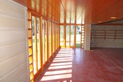 Oko 2.000 betonskih blokova su korišćeni za izgardnju zidova ove kuće, i oni su morali da budu ručno izrađeni od strane zanatlija. Krovne nadstrešnice i prozorski okviri su izrađeni od drveta, a oko 6.000 obojenih staklenih blokova funkcionišu kao vitraži.