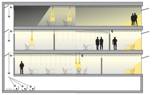 „Vi koristite prostor koji je već u potpunosti na raspolaganju“, kaže Džejson Hikenfeld (Jason Heikenfeld) koji je razvio sistem zajedno sa Antonom Harfmanom (Anton Harfmann). „Čak i ako želim da adaptiram postojeću arhitekturu, imam prostora i mogućnosti da to uradim, a pritom mi ne treba nešto mehaničko ili glomazno, kao motor koji zuji u uglu vaše kancelarije usmeravajući svetlost. Naš sistem izgleda samo kao komad stakla koji se odjednom uključuje i isporučuje svetlost.“