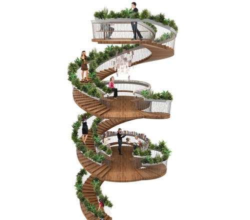 Londonski dizajner Pol Koksidž (Paul Cocksedge) je nedavno predstavio projekat kružnog živog stepeništa za kancelarijsku zgradu Ampersand u Sohou. Četvorospratno spirlano stepenište je obloženo bujnim biljnim svetom koji obogađuje atrijum kancelarijske zgrade sa zelenilom, uz povezivanje prva četiri sprata zgrade.