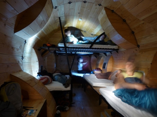 Sklonište može da ugosti devet osoba i opremljeno je sa tri bračna kreveta i tri obična kreveta. Unutrašnjost je opremljena i sa preklopnim stolom, kamping stolicama, malim prozorima nalik brodskim i ekološkim toaletom koji nije daleko od samog skloništa.