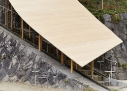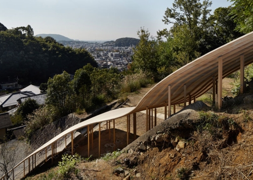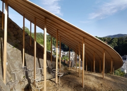 Japanski arhitekta Rjue Nišizava (Ryue Nishizawa) se udružio sa dizajn studiom Nendo kako bi stvorio paviljon na brdu, ispunjen sa stolicama napravljenim tako da izgledaju kao da su gomile divljih pečurki. Nišizava, koji je najpoznatiji kao polovina arhitektonskog dueta biroa SANAA, radio je sa studiom Nendo kako bi izgradio ovaj drveni paviljon na strmoj padini u okviru kampusa Univerziteta Kjotoa za umetnost i dizajn.