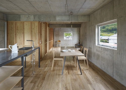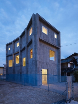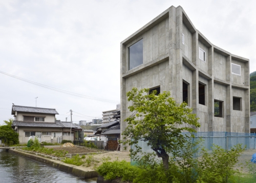 Zatvoreno dvorište sa zemljanim podom i centralnim drvetom se krije iza betonskih zidova ove kabaste kuće u Hirošimi, koje je delo japanskog arhitektonskog biroa Suppose Design Office. Smeštena pored kanala, kuća u Jagi je namerno projektovana da deluje nedovršena, pa su njegovi betonski zidovi ostali izloženi u enterijeru i eksterijeru.