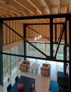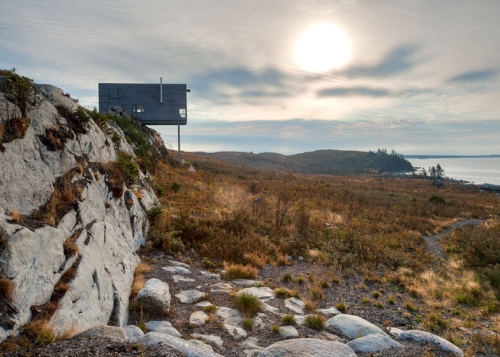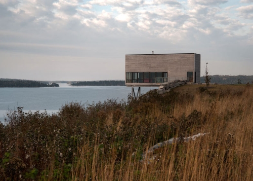 Ova kockasta drvena kuća kanadskog arhitektonskog biroa MacKay-Lyons Sweetapple Architects prostire se preko ivice stenovite litice na atlantskoj obali Nove Škotske u Kanadi. Samo mali deo kući ima dodira sa zemljom, dok se većina njenog volumena prostire preko ivice litice ka obali, podržan od strane čeličnih I greda poređanih u cik-cak aranžmanu.