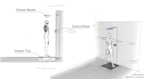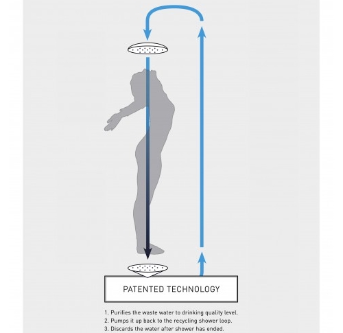Kako sapunjava, korišćena voda otiče u odvod, ona se odmah prečišćava i upumpava direktno nazad u tuš za ponovo korišćenje. Ovo je sličan sistem onom koji astronauti koriste u šatlovima, što može da objasni činjenicu zašto je kompanija Orbital Systems sarađivala sa NASA Svemirskim centrom Džonson (Johnson Space Center) na projektu.