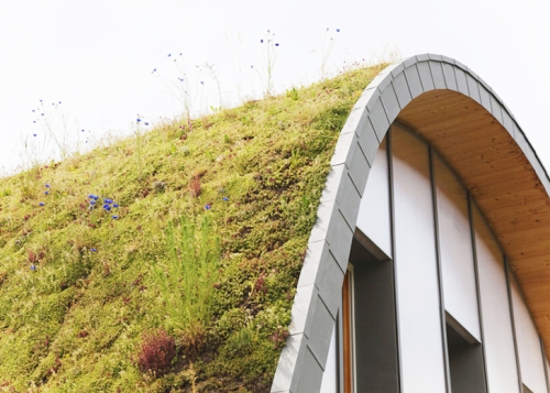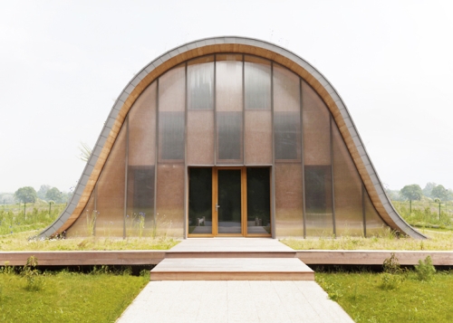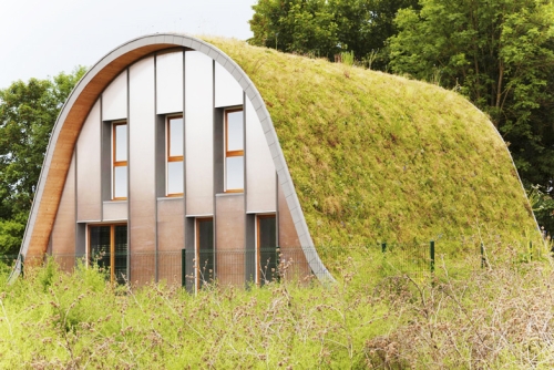 Arhitekta Patrik Nado (Patrick Nadeau) projektovao je Kuću talas (La Maison-vague) sa zelenim krovom kao jednu od 63 eksperimentalnih kuća koje se grade blizu Remsa u Francuskoj. Polucilindrična ljuska sa vegetacijom ima ulogu toplotne izolacije i klizi lagano kako bi zaštitio prostor kuće, dok se obod koji okružuje drvenu ljusku transformiše u veliku klupu.
