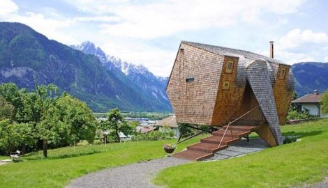 Ova kuća se zove Uvogel, i predstavlja kombinaciju reči "UFO" (NLO) i "Vogel" (ptica na nemačkom). Prvobitno je zamišljena kao porodična vikend kuća.