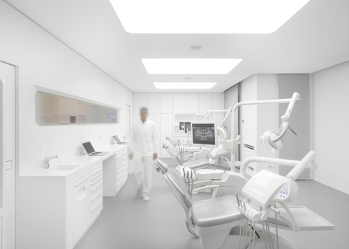 „Predvideli smo takozvani implant koncept, zasnovan na tipičnom ortodontskom korišćenju medicinskih uređaja visoke preciznosti, kao princip dizajna širom prostora“, objasnile su arhitekte iz biroa Bureauhub.