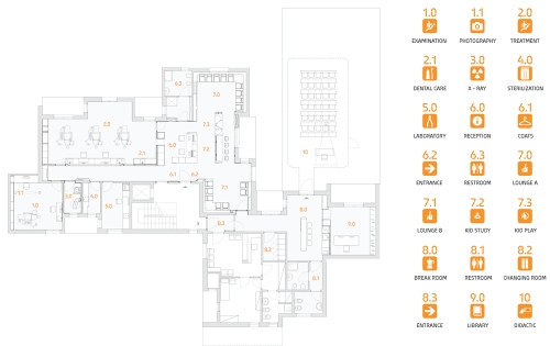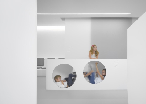 Klinika ima klijentelu koja se sastoji uglavnom od dece, tako da je biro Bureauhub takođe postavio komad dizajniranog nameštaja koji kombinuje sto za pisanje i crtanje sa pećinom ispod koja se sastoji od skrovišta u obliku balona.
