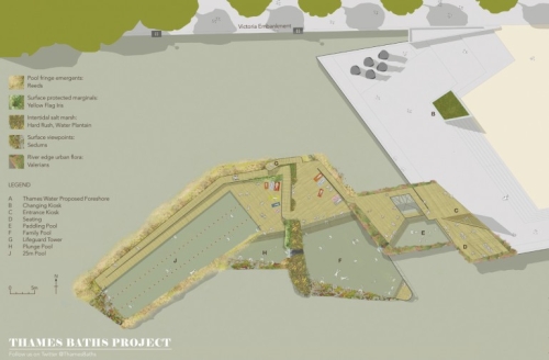 Biro Octopi opisuje svoj projekat Thames Baths Project kao „intimanu i razigranu vezu između stanovnika Londona i istorijske žile kucavice grada, reke Temze“. Bazeni su podržani od strane drvenih i čeličnih šipova koji im omogućavaju da se podižu i spuštaju sa plimom i osekom. Pored pružanja atrakcije za same kupače, oni će obezbediti i staništa za ribe, ptice i niz flore.