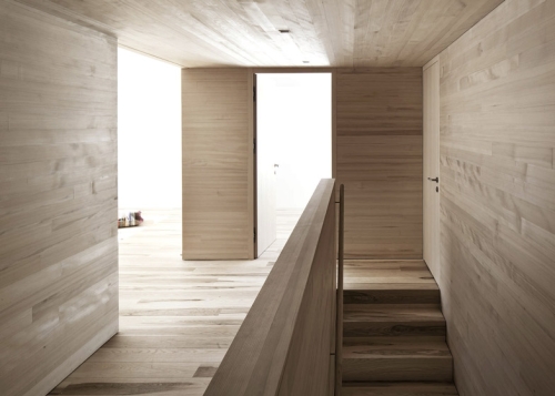 „Namerno grubi drveni paneli zajedno sa nasumičnošću manjih i velikih prozora generišu uzbudljivu igru fasade i intimnu atmosferu unutra, sa odabranim uramljenim pogledima na spoljašnjost“, objašnjavaju arhitekte.