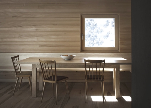 „Naše korišćenje drveta bilo je slično tradicionalnom korišćenju od pre toliko godina - jednostavno, ručno i grubo“, rekao je arhitekta Bader, objašnjavajući kako je smrča dostavljena iz pilane, a zatim postavljena na zidove u potpuno istom stanju.