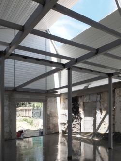 Novi ram konstruisan u okviru postojećih zidova će pridržavati gornji sprat koji će smeštati dve spavaće sobe, kupatilo i kancelariju na mezaninu.