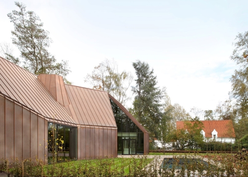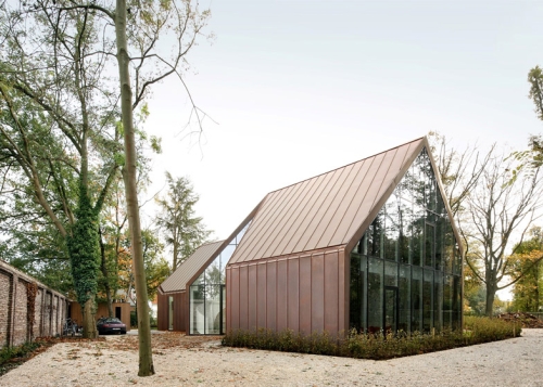 Netretirana bakarna obloga koja pokriva zidove i krov ove kuće blizu Genta u Belgiji će postepeno menjati boju iz zlatno braon do živopisne tirkizne. Belgijski arhitektonski biro Graux & Baeyens Architecte želeo je da pruži kući „poetsku prolaznost“ postavkom bakarnih ploča sa vidljivim šavovima koji pokrivaju celu spoljašnjost kuće VDV, i koji su ostavljeni netretirani kako bi vremenom oksidirali.