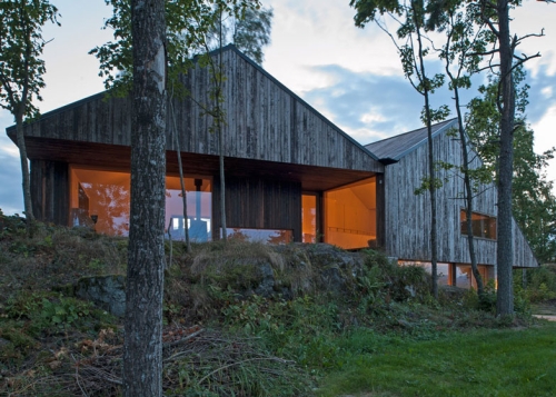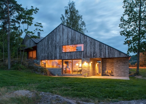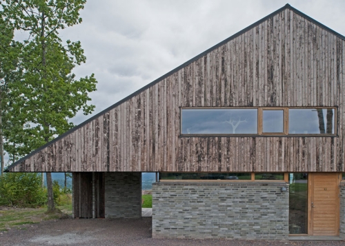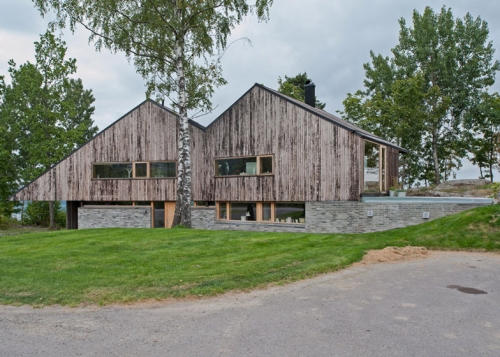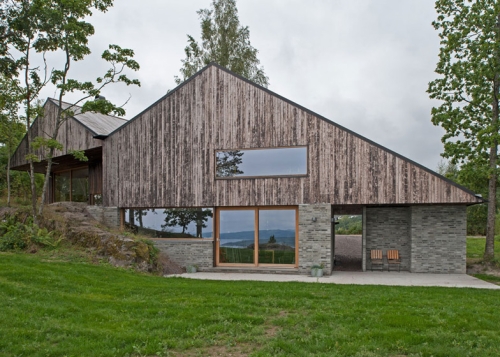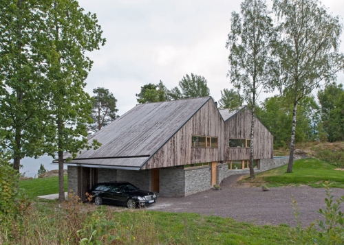 Dva dela ove kuće u blizini Osla, delo arhitektonskog biroa Schjelderup Trondahl Architects, je povezano pod uglom, sa mestom dodira njihovih zabatnih krovova koji formiraju iskrivljeni oblik slova M. Arhitekonski biro iz Osla je projektovao ovu porodičnu kuću za lokaciju sa koje se pružaju pogledi na grad Holmestrand i susedne fjordove.