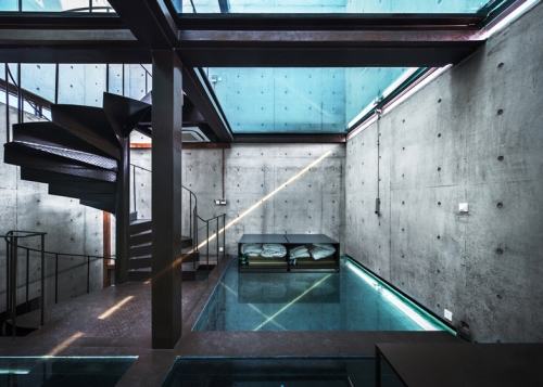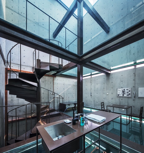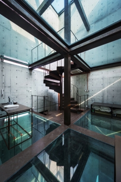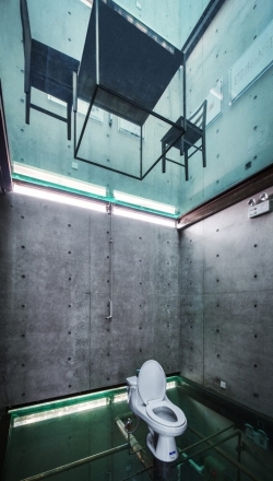 Stakleni podovi omogućavaju stanarima ove kuće da sa trpezarijskog stola gledaju dole ka toaletu koji se nalazi unutar ove betonske kuće bez prozora, smeštene u Šangaju, i delo kineskog arhitektonskog biroa Atelier FCJZ.