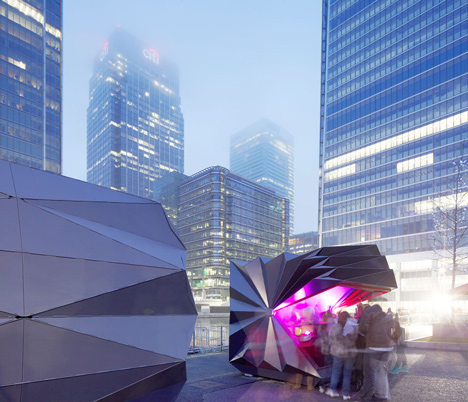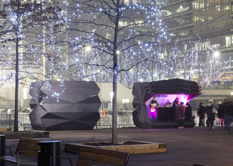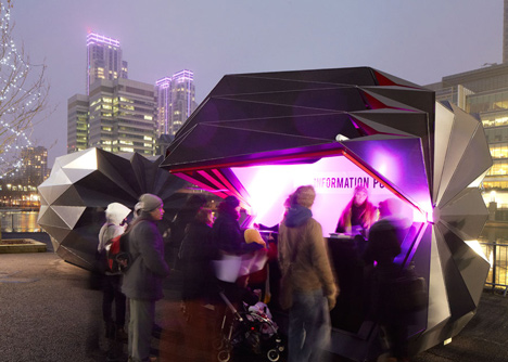 Dva kioska su postavljena na javnom trgu na londonskom Kanari vorfu, a imali su funkciju informacionog punkta i mesta za prodaju hrane i napitaka tokom trajanja festivala skulptura od leda održanog prošlog meseca.