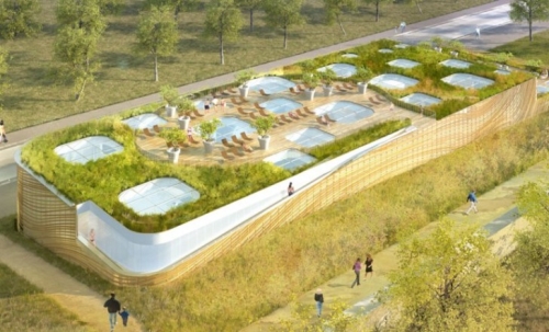 Zeleni krov je primarni element kompleksa, pružajući prostrani solarijum ispod, koji obezbeđuje opuštajuću oazu za lokalno stanovništvo koje želi da uživa u prirodnoj sunčevoj svetlosti, a da ujedno izbegava visoke letnje temperature.